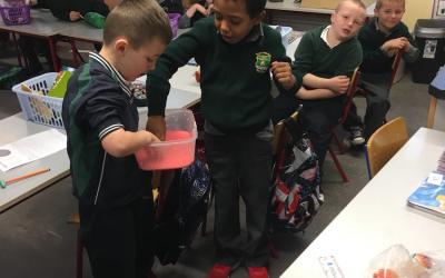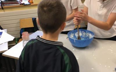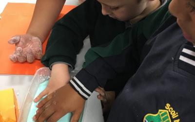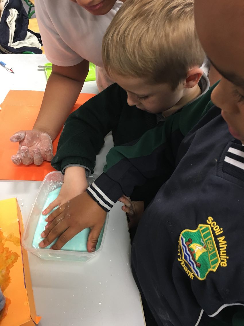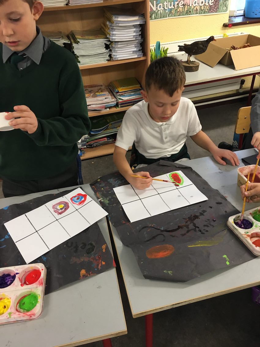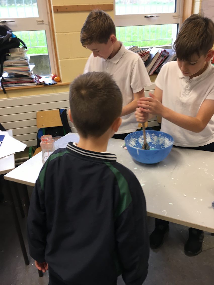 This is us working hard to mix colours and make shapes.