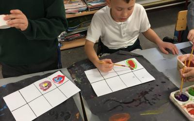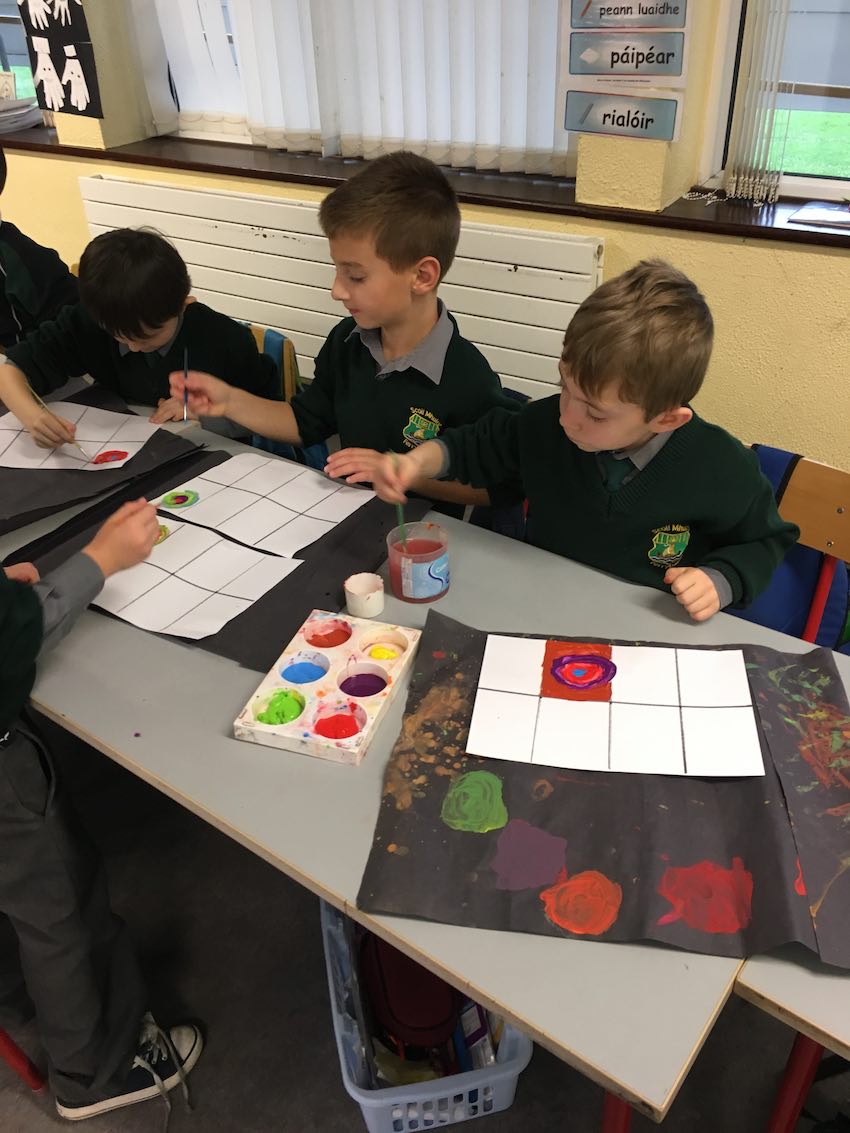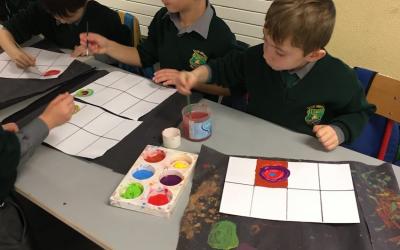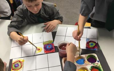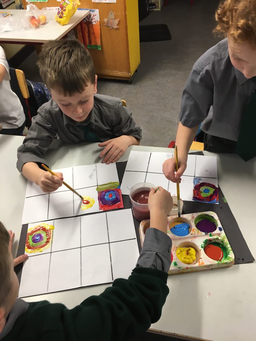 We looked at art by Wassily Kandinsky. He was a Russian artist who was famous for his use of colour and shapes and he used to love to listen to operas music when he was creating his art.